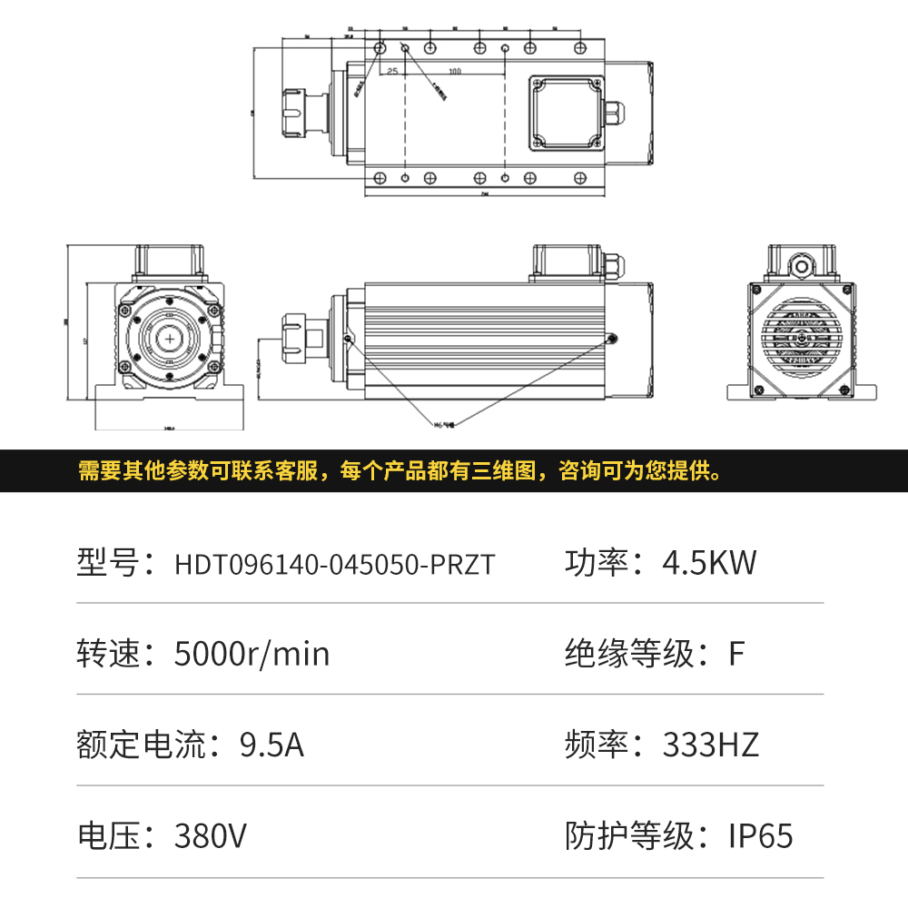 - 锯切电机转速可选范围为3000-240000RPM,所有型号均可非标定制,兼具高扭矩和紧凑尺寸。