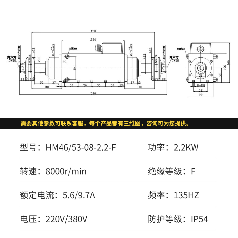 非标定制高速电机HM4653-08-2.2-F